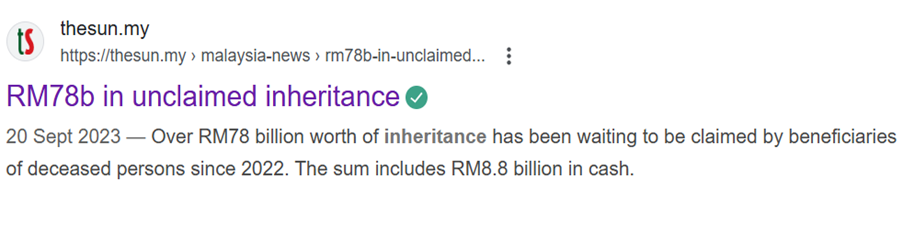 Figure from TheSun.my: Unclaimed inheritance amounted to RM 78 billion in 2023